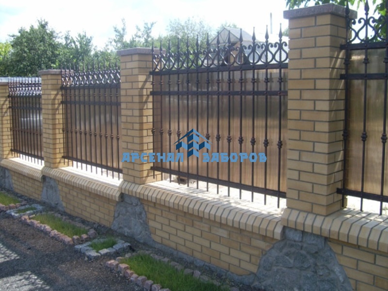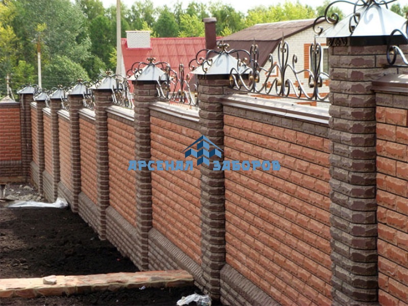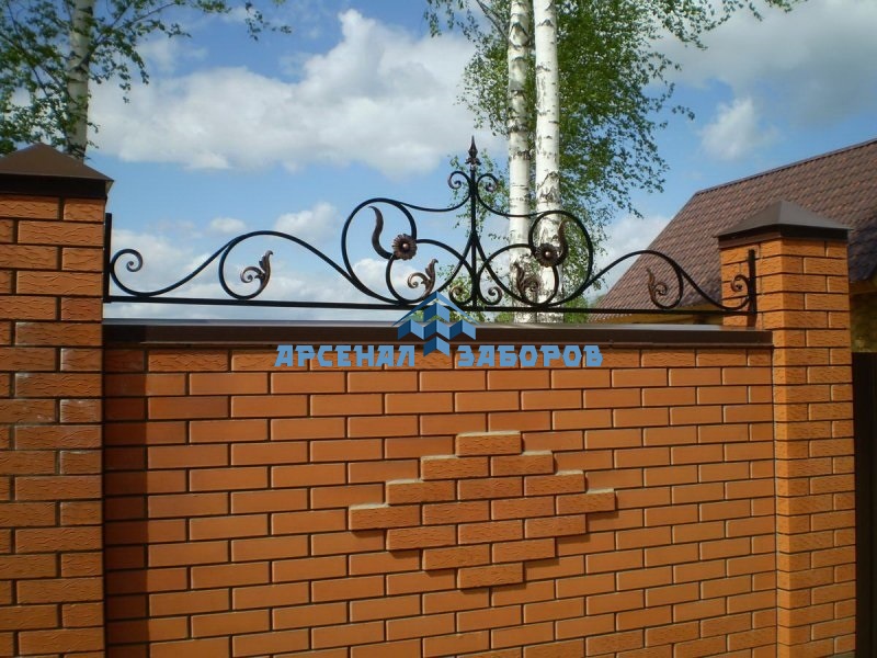 Кирпичный забор с ковкой