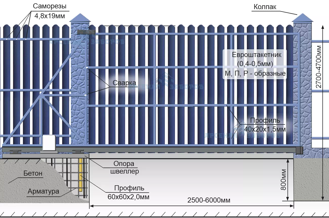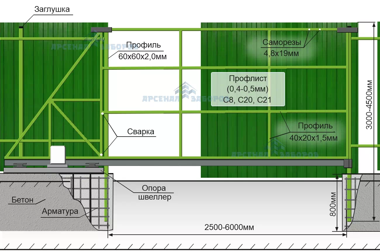 *Калькулятор рассчитывает стоимость откатных ворот по стандартной конструкции.